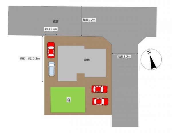| 接道状況 | 角地 (北側 公道5.2m) (東側 公道 間口5.2m) | ||